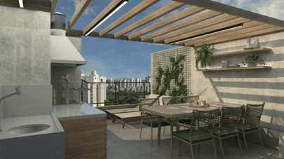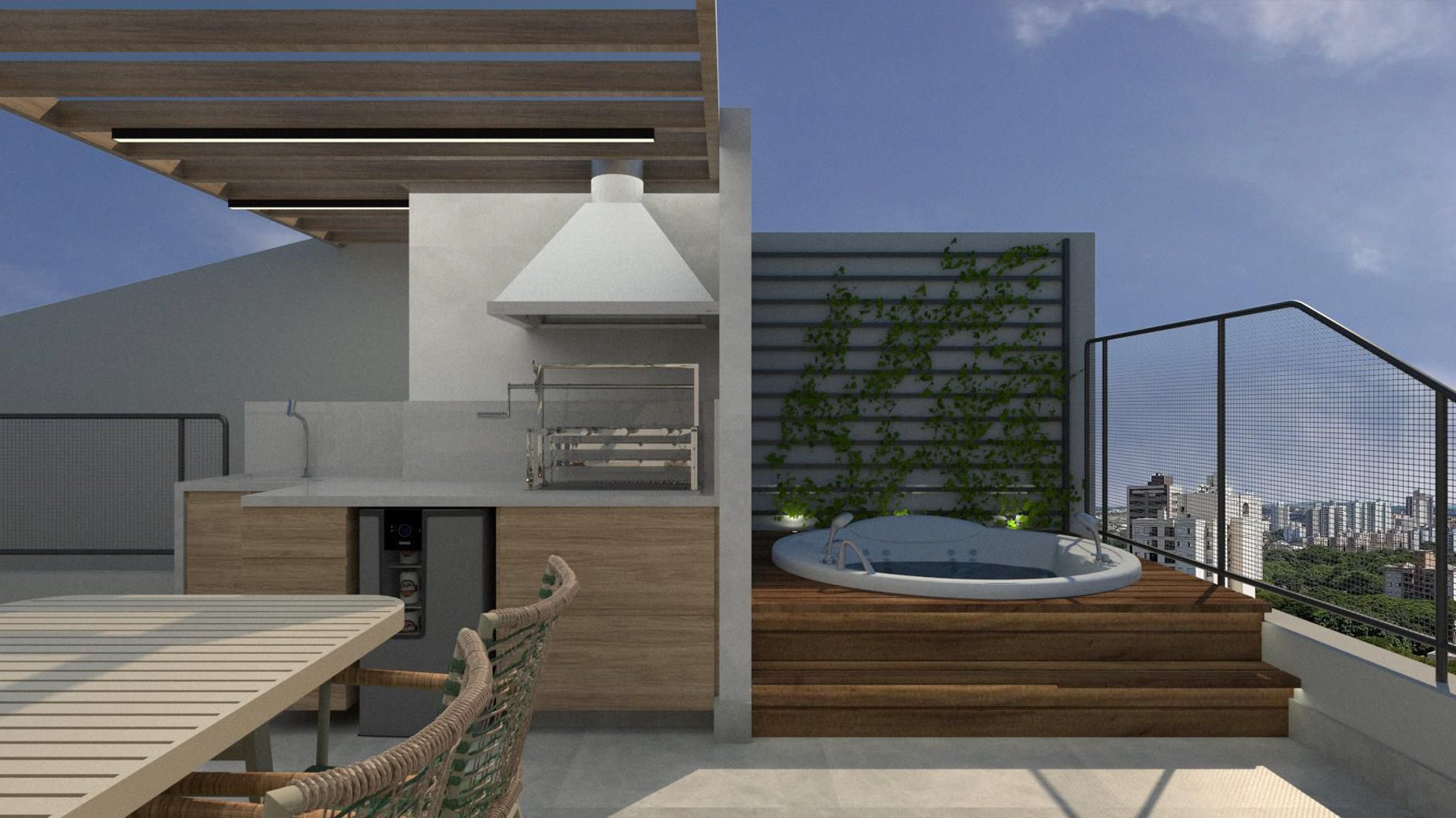Aproveite o melhor do entretenimento em um rooftop que inclui infraestrutura para pergolado, churrasqueira e hidromassagem com vista panorâmica.