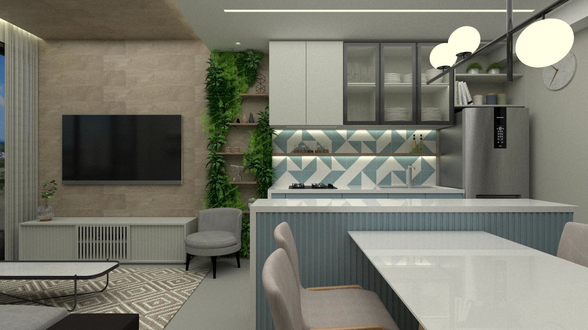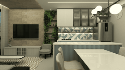 Estilo e Conforto em Cada Espaço. Um ambiente espaçoso que une sala de estar, cozinha americana e sacada para momentos únicos.