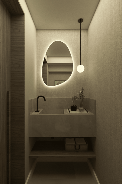 Praticidade para receber visitas com um lavabo moderno e confortável.