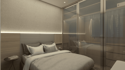 Descanso perfeito, 2 quartos (2 suítes) amplos, janelas grandes com persianas blackout motorizadas com acionamento por controle remoto (automatizáveis).